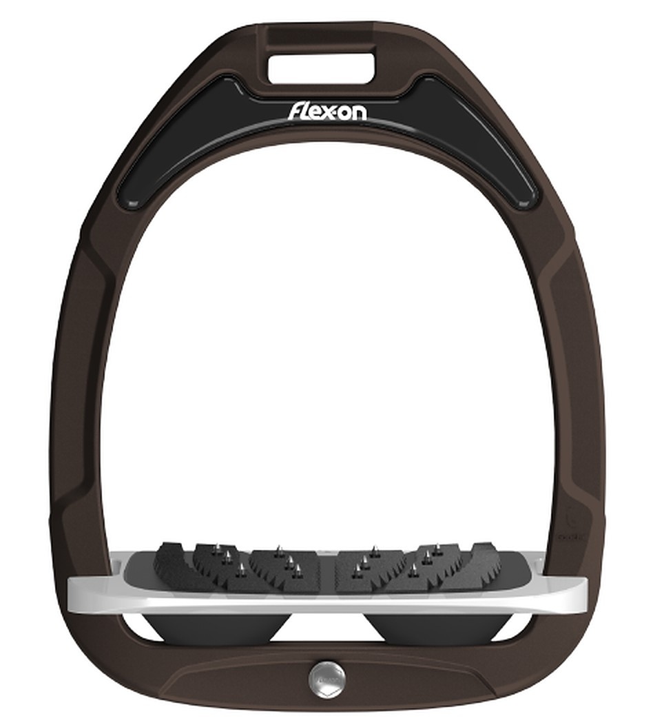 Die Abmessungen des Flex-on Steigbügels sorgen für eine perfekte Ausrichtung für eine optimale Reiterposition und der Winkel des geneigten Fußbetts fördert ein natürliches Absenken der Ferse. Der Fuß des Reiters bleibt an Ort und Stelle und die Ermüdung wird reduziert, was die Präzision fördert.