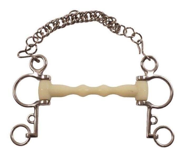 Je länger die Anzüge, desto schärfer der Effekt. - Ein Pelham kann mit 2 Zügeln verwendet werden; Der eine Zügel am oberen Ring für einen weichen Griff und der andere Zügel am unteren Ring für die Hebelwirkung von Pelham.