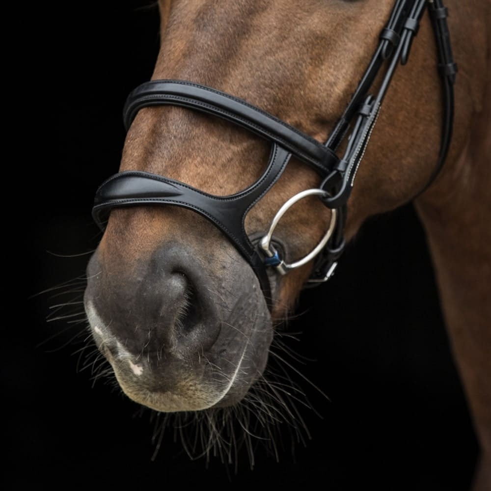 LJ Leathers doppelte Reithalfter Gotha ist eine Kombination aus einem hohen und einem niedrigen Reithalfter und sorgt dafür, dass das Pferd sein Maul weniger weit öffnen kann, ohne das Reithalfter festziehen zu müssen. Das LJ Leathers Gotha Nasenband ist anatomisch geformt und verfügt über ein weiches Polster zum Schutz des Kiefers. Dieses Nasenband kann für alle Trensen der anatomischen Linie Pro Selected verwendet werden.