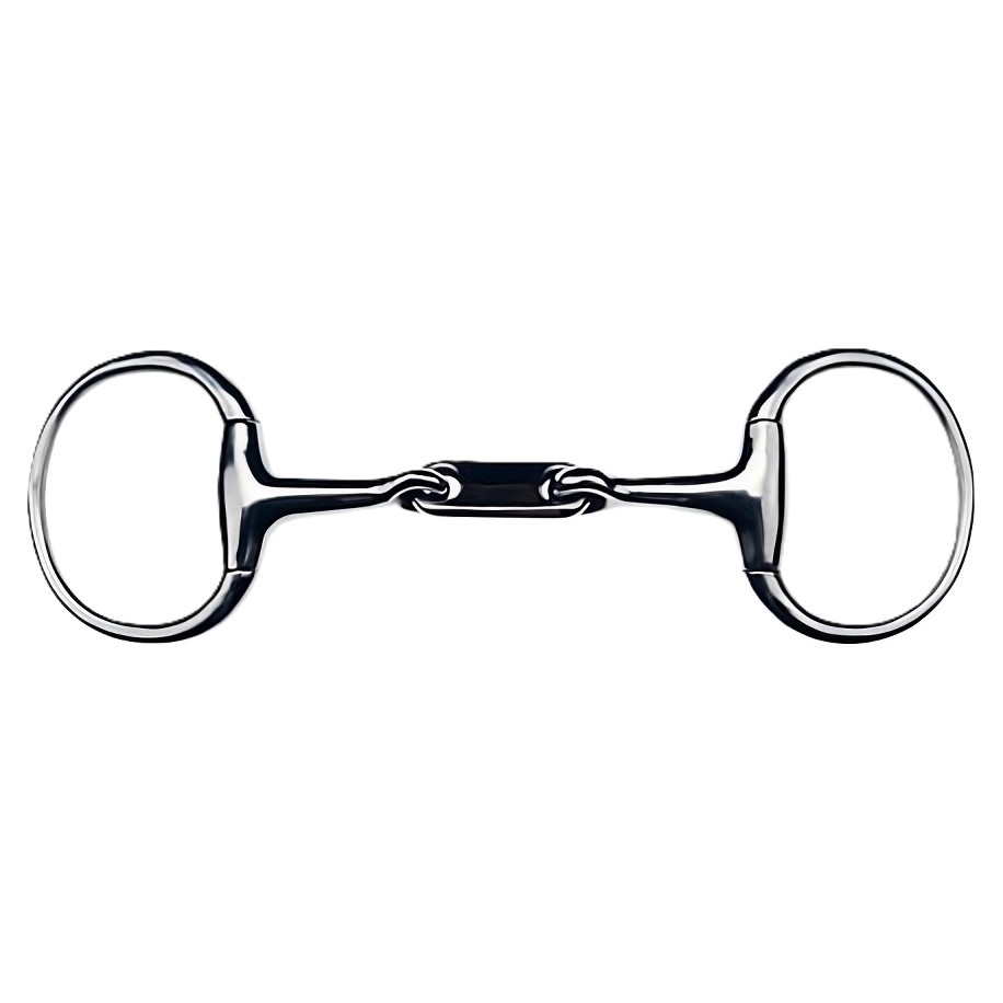 - Der mittlere Teil dieses Mundstücks liegt flach auf der Zunge und übt mehr Druck auf die Zunge aus als ein einzel Gebrochenes mundstück.