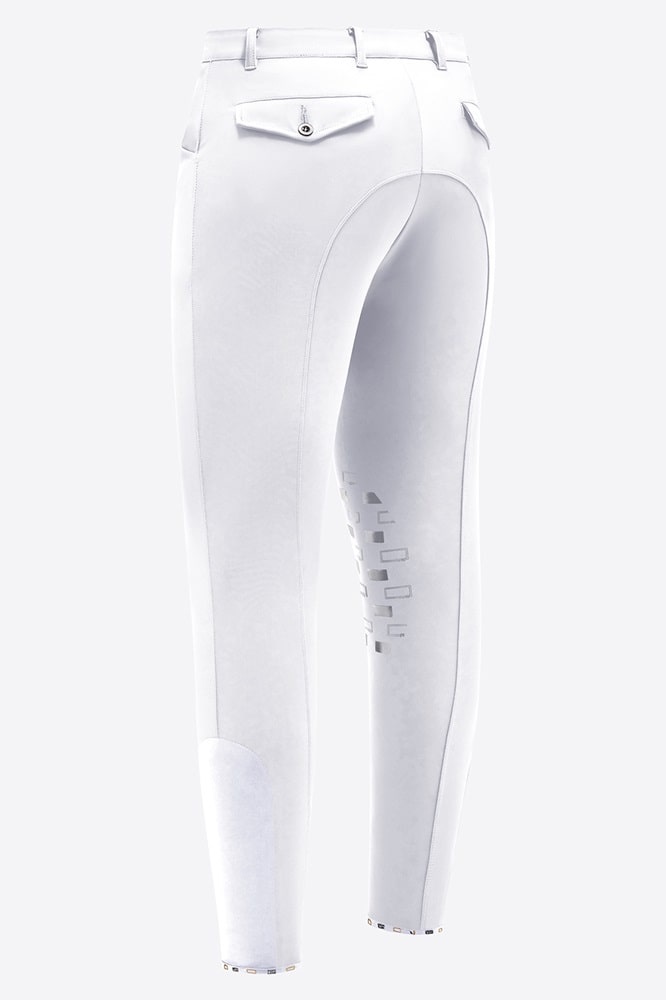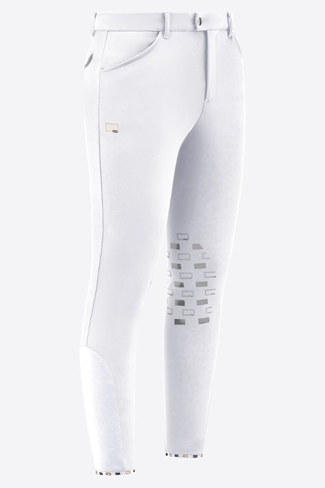 Rider's Gene men's riding breeches with knee grip are made of a comfortable bi-stretch technical fabric that comfortably adapts to all your movements. RG Italy riding breeches with rubber RG logo and transparent rubber knee grip, made of breathable Jersey material for freshness, are anti-static and have a UV protector for the best performance. The breathable sock in the lower part of the pants wraps the calf under the boot and has an elastic reinforcement at the bottom of the pants with RG logo. The finish with a contrasting printed RG logo gives the RG Italy riding breeches a modern look.