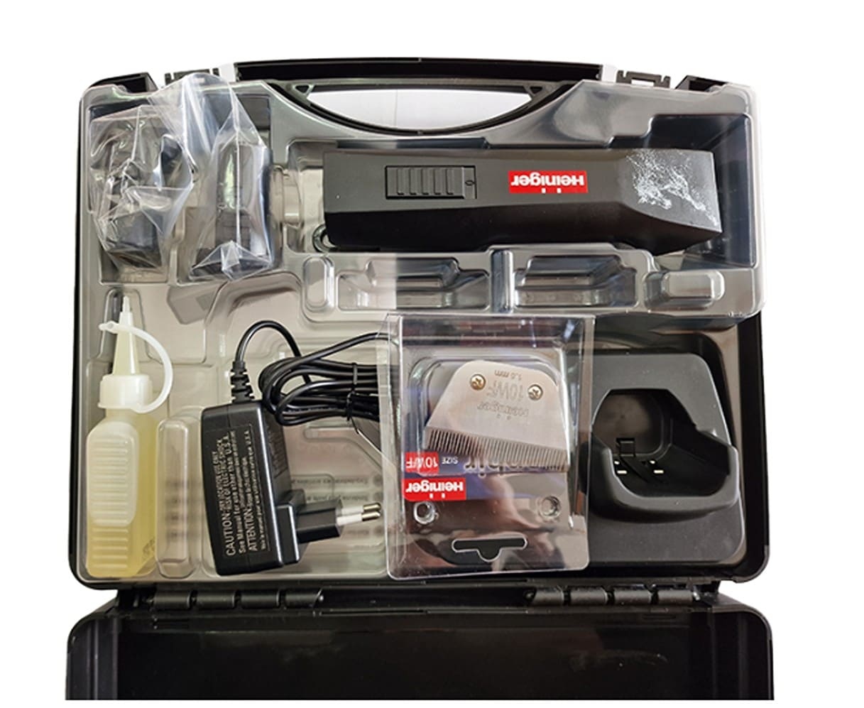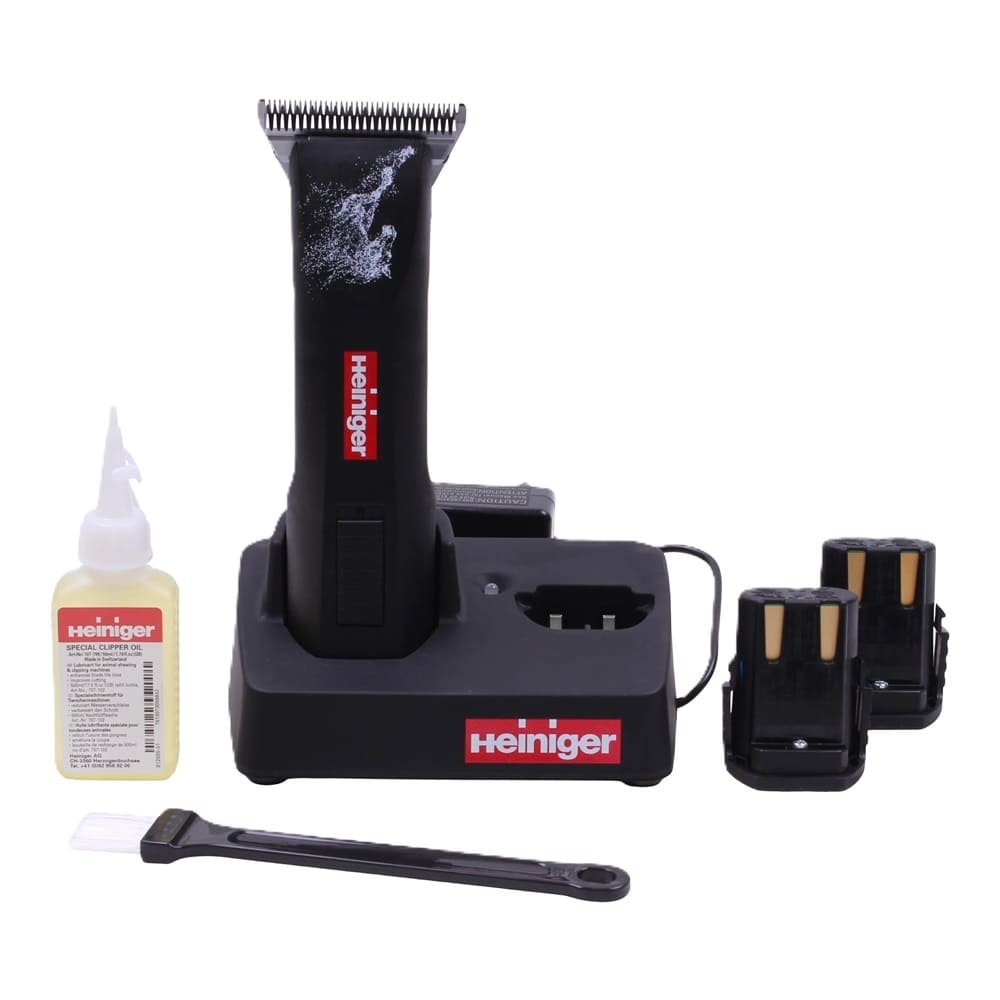 De scheermachine wordt geleverd met 2 krachtige lithium-ion batterijen die ieder maximaal twee uur lang draadloos scheren leveren. De batterij kan binnen een uur volledig worden opgeladen. Afneembare scheerkoppen van Heiniger, Furzone en Andis zijn compatibel met Heiniger Saphir tondeuses.